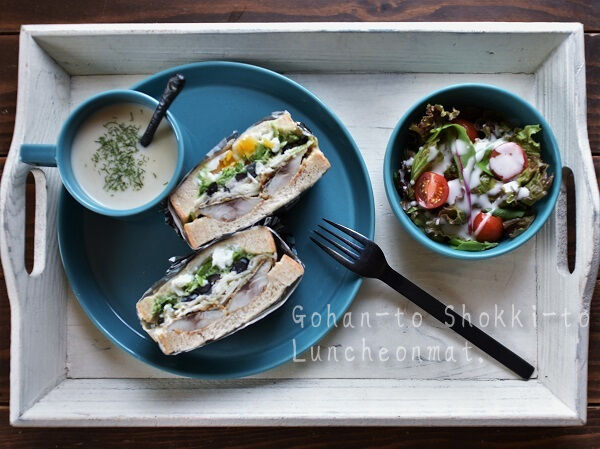 具は、この前作った残りのアジのすりごま焼き・スライスオニオン&ピーマン・ブラックオリーブ・茹でたまごで、味付けはタルタルソース。