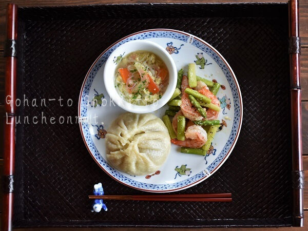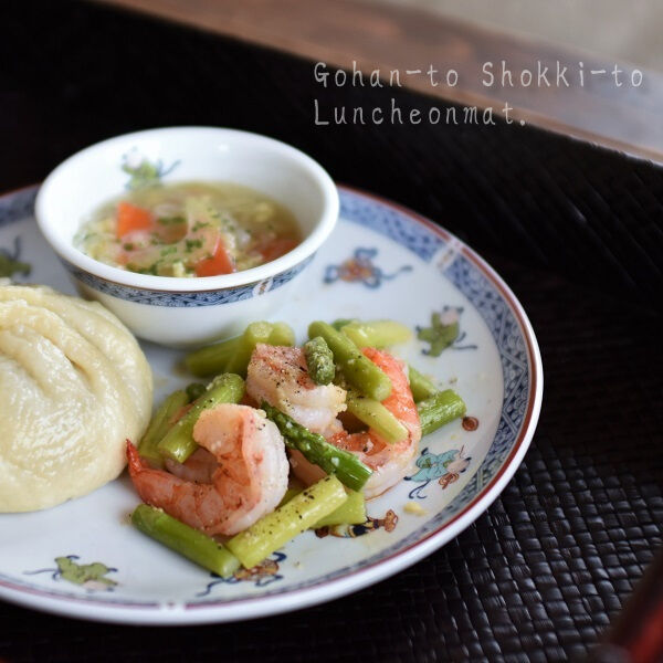 生姜とにんにくでエビとアスパラを炒め、味付けは鶏ガラスープの素と塩コショーのみ、と私には珍しくシンプルに。